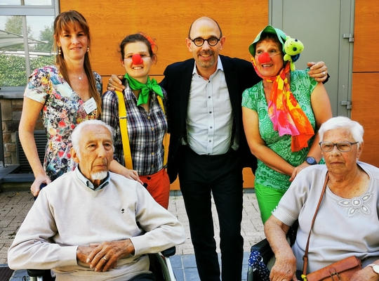 Bewoners en demiclowns van Woonzorgcentrum De Wyngaert naar de kermis
